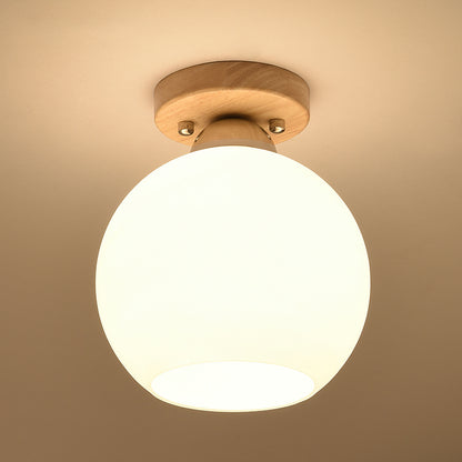 Shaded Entryway Flush Mount Lighting White Glass Nordic LED Flush Ceiling Light Fixture with Wooden Canopy