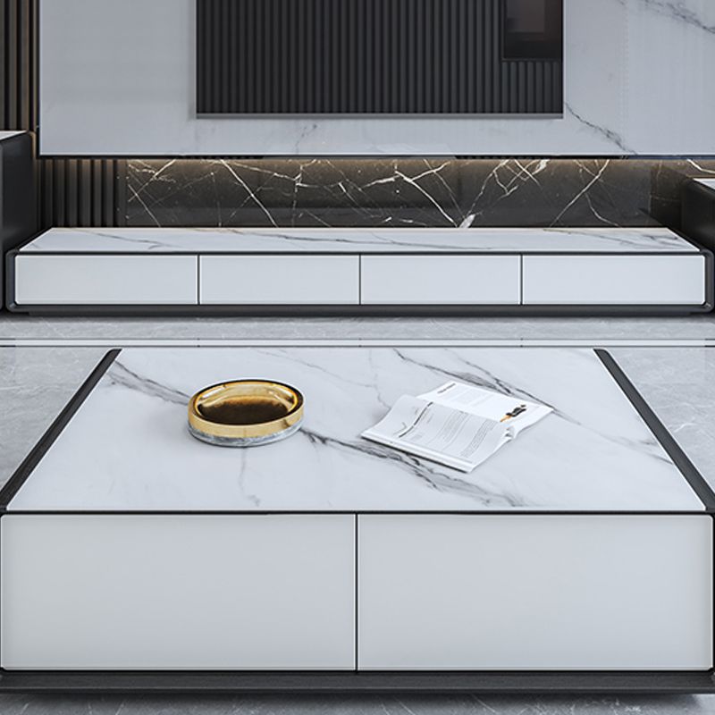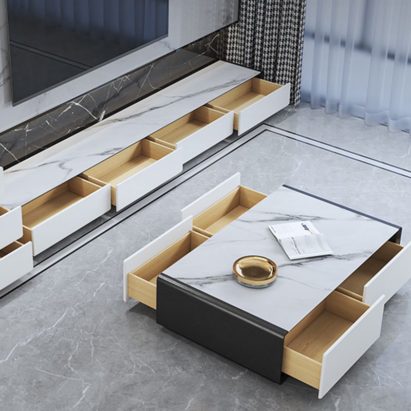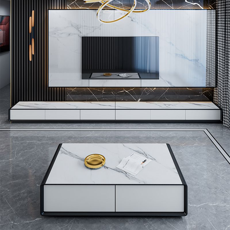 Slate and Wood Stand Console Contemporary Style Home Closed TV Cabinet