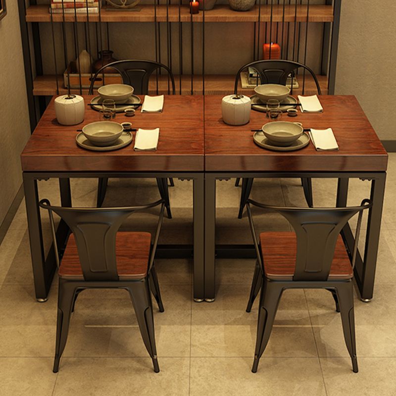 Solid Wood Dining Table Industrial Square Table with Black Frame