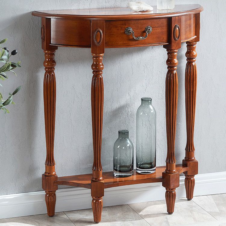 Solid Wood Half Moon Console Table 1-drawer 35.43" Tall Accent Table