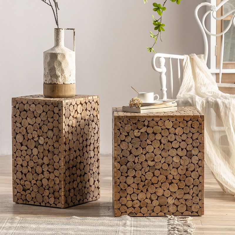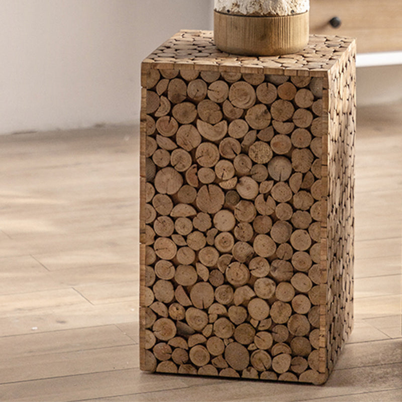 Solid Wood Living Room Side Table Light Brown Square End Table
