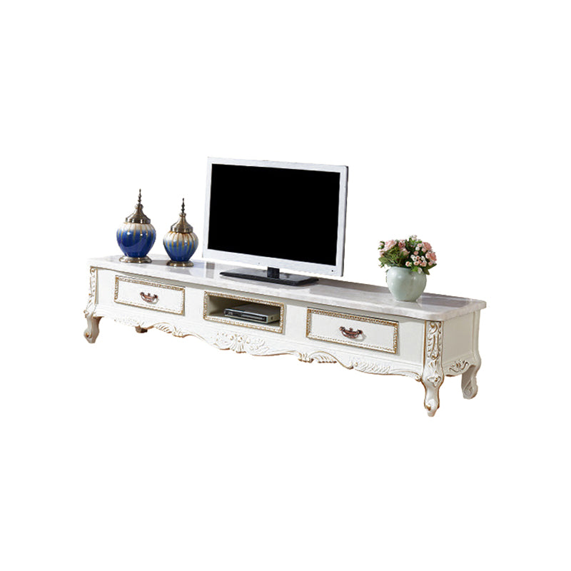 Solid Wood TV Media Console Open Storage Media Console TV Stand with 2 Drawers