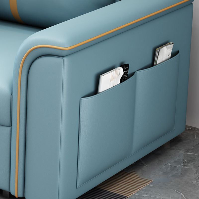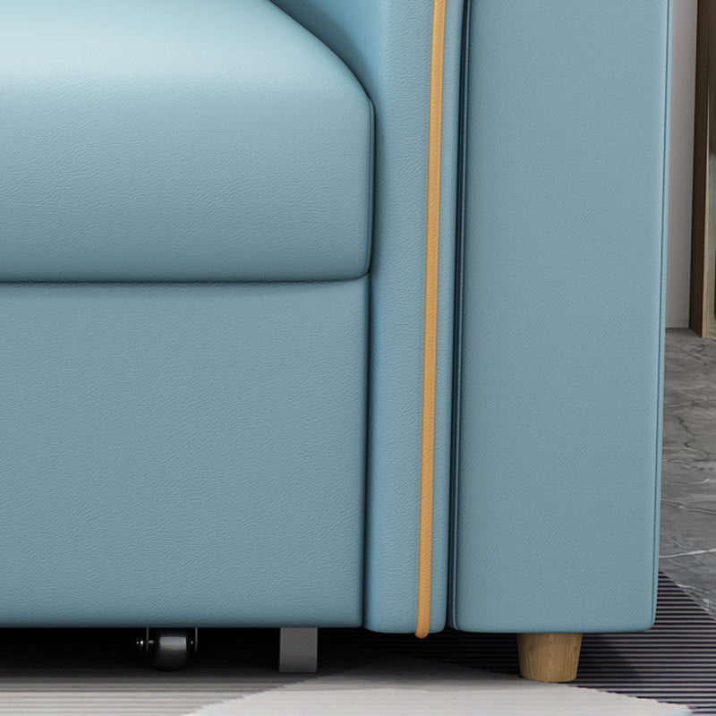 Square Arm Contemporary Convertible Faux Leather Bed Settee with Pillows
