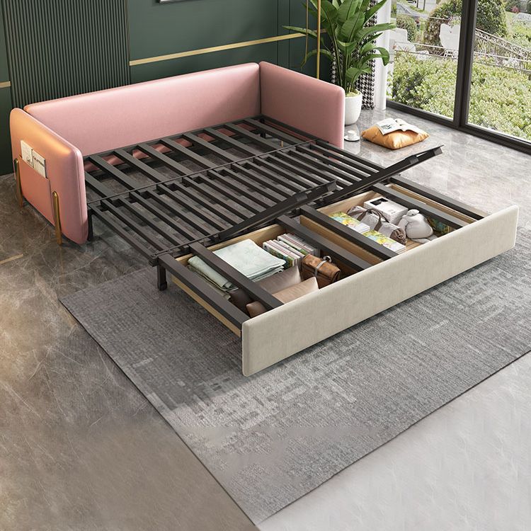 Square Arms Futon Foldable Pillow Included Pink Sleeper Sofa with Storage