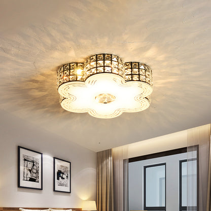 Square-Cut Crystals White Flush Mount Lighting Floral LED Modern Close to Ceiling Light, 15.5"/19.5" Width Clearhalo 'Ceiling Lights' 'Close To Ceiling Lights' 'Close to ceiling' 'Flush mount' Lighting' 1432813