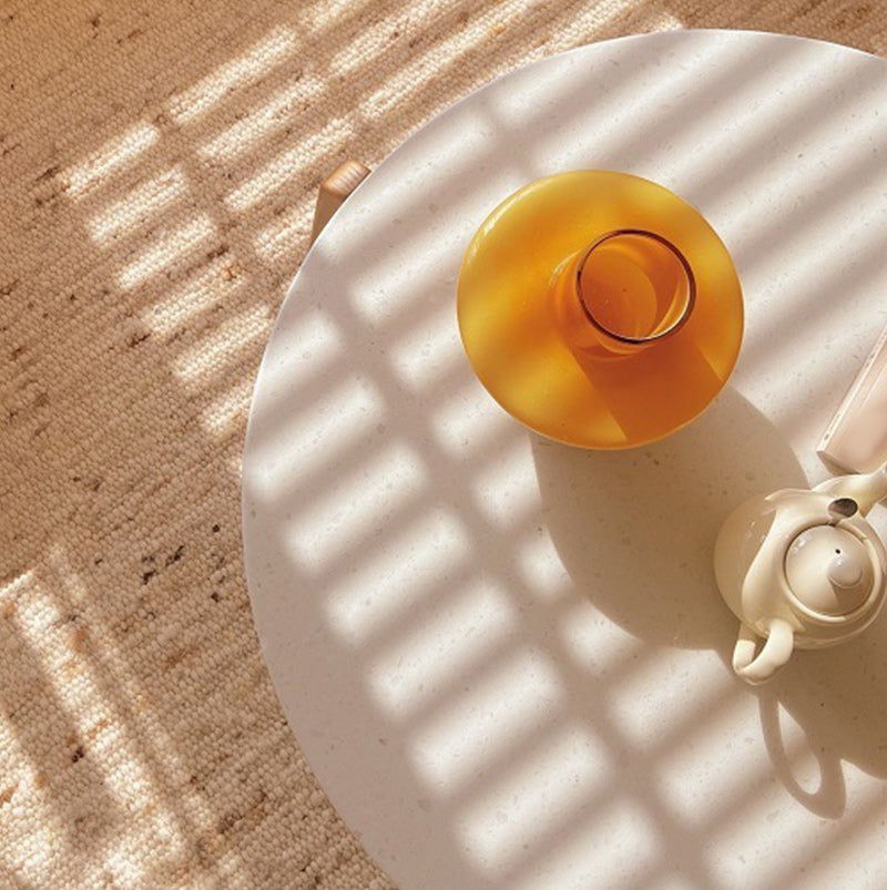 Stone and Solid Wood Coffee or End Table Contemporary Coffee Table in Beige