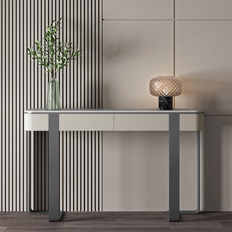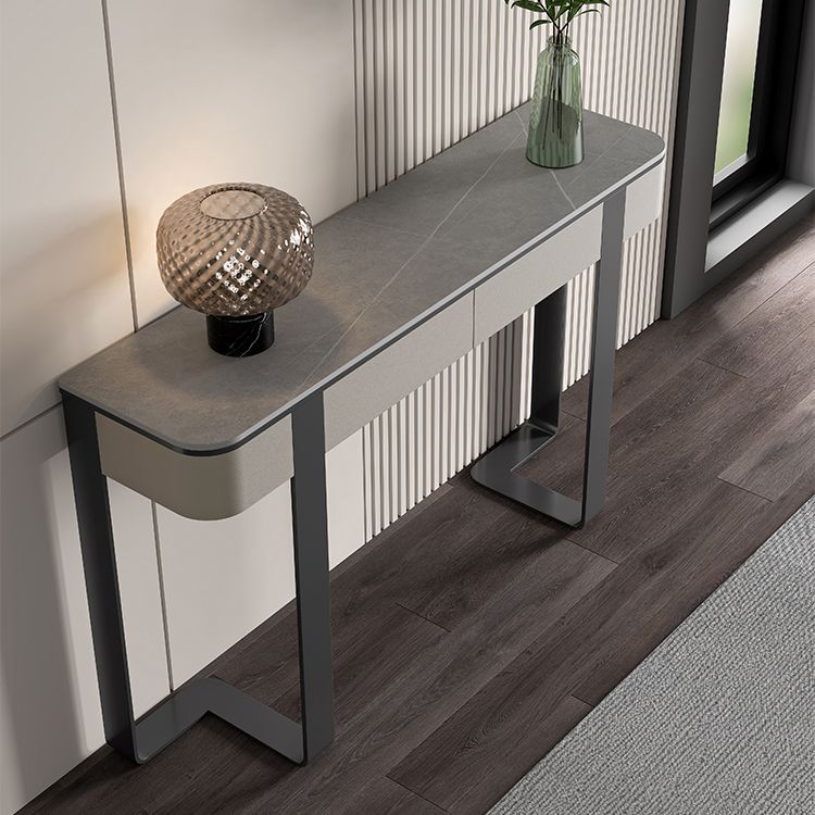 Stone Half Moon Console Table 1-shelf 33.46" Tall Accent Table