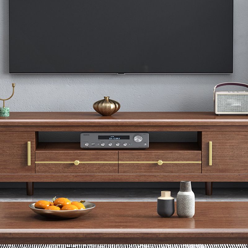 Traditional Walnut TV Stand Console Open Storage TV Media Stand for Living Room