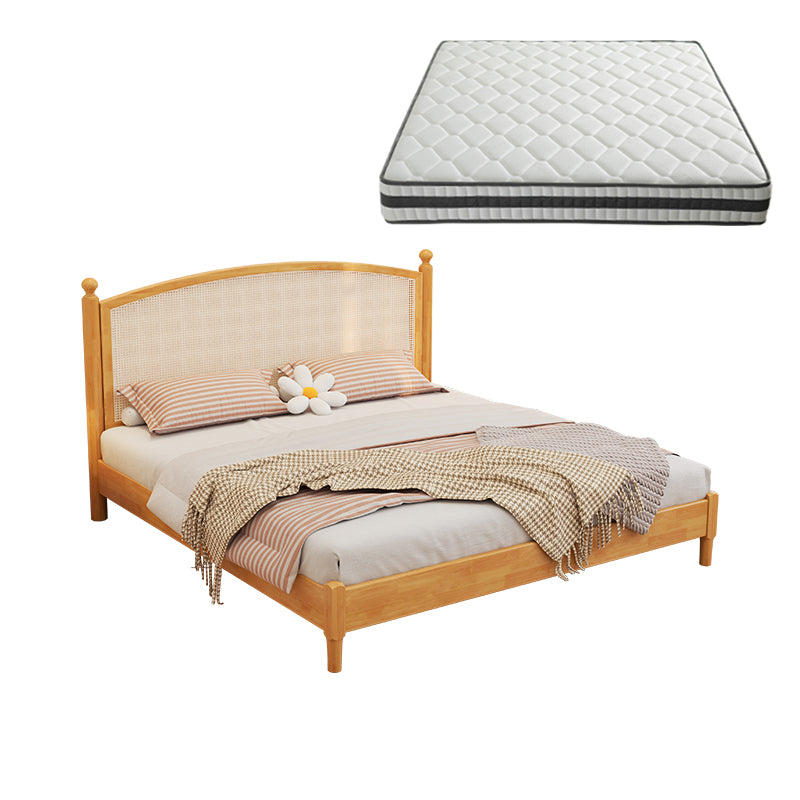 Tropical Brown Panel Bed 46.06" High Rubberwood Bed with Headboard
