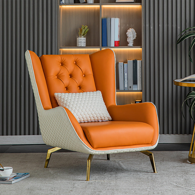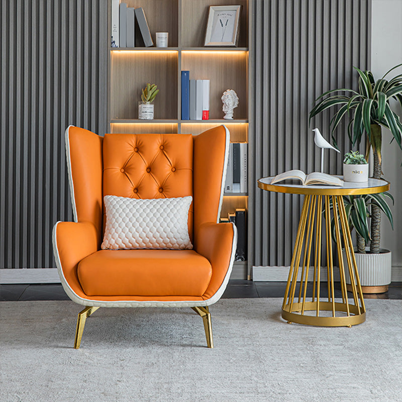 Tufted Back Lounge Chair Leather Ottoman Set with Gold Tone Legs