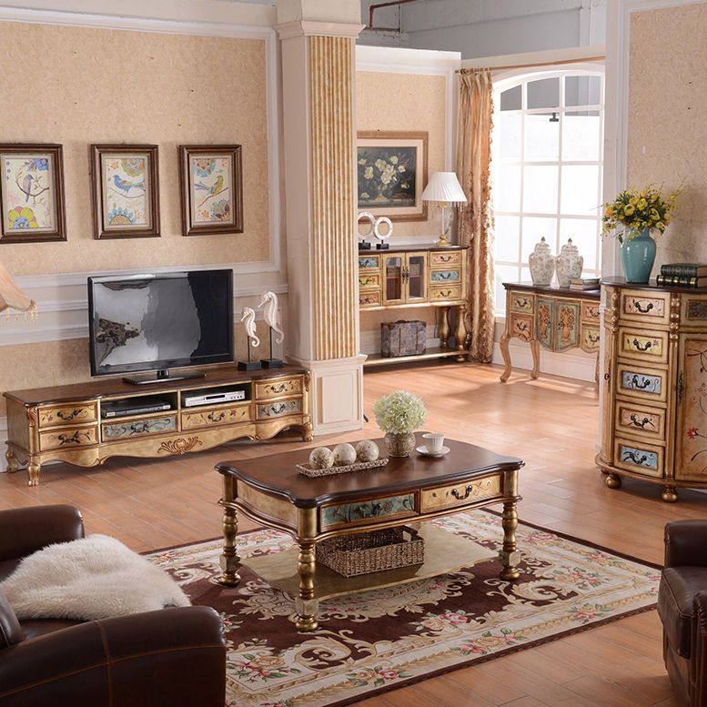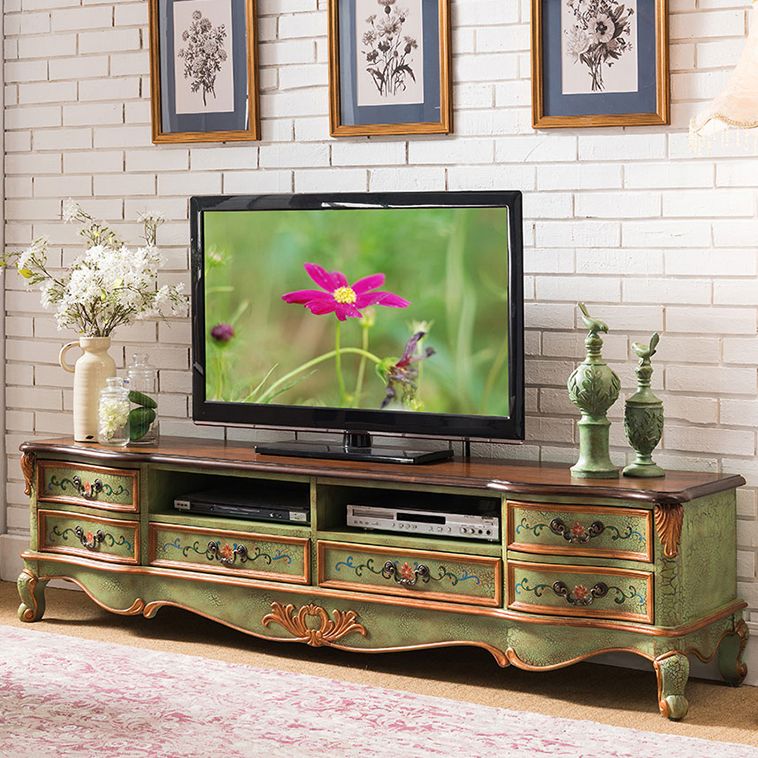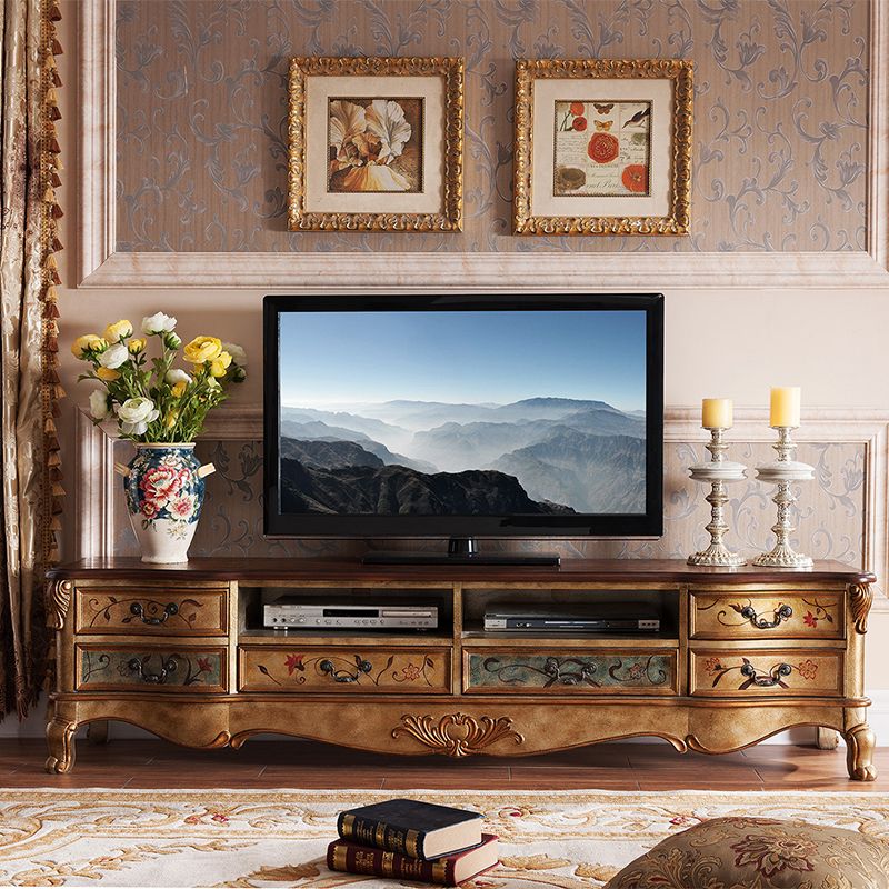 Vintage Birch Wood Media Console Matte Finish TV Media Stand with Drawers and Open Storage