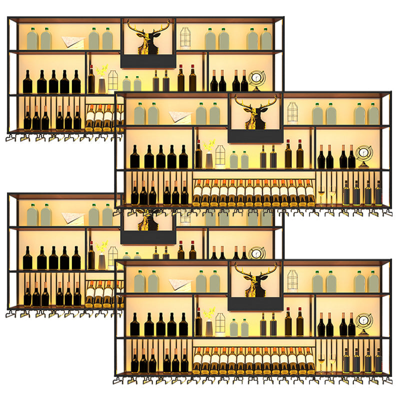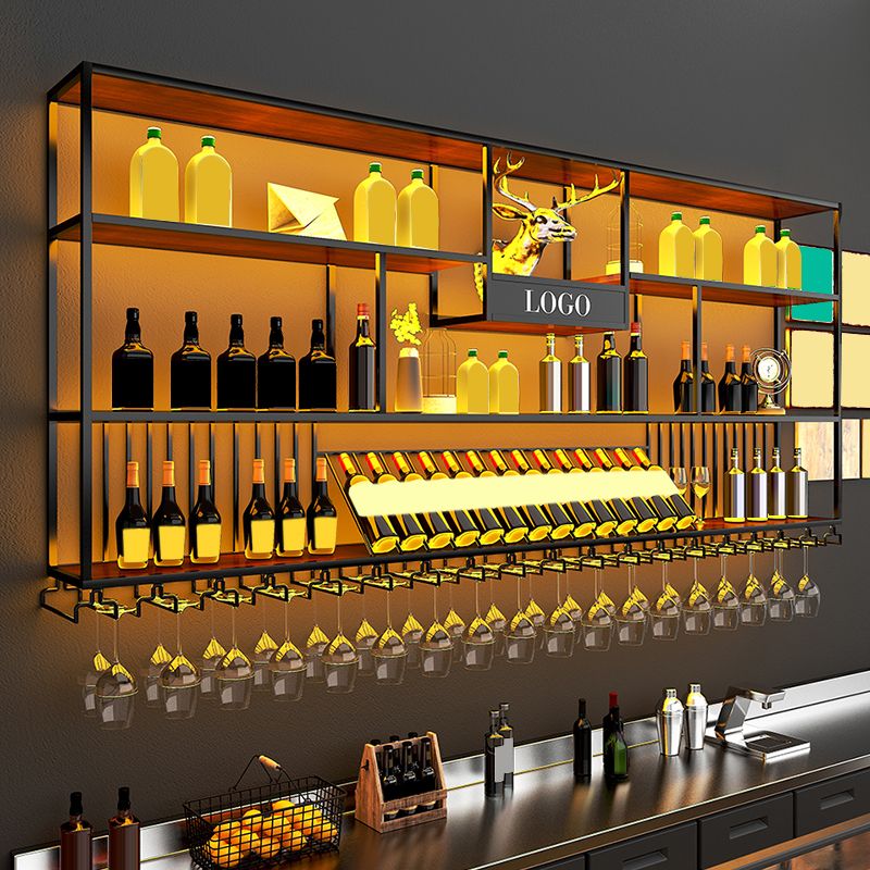 Wall Mounted Wine Rack Kit Metal and Wood Wine Holder Rack in Black and Brown