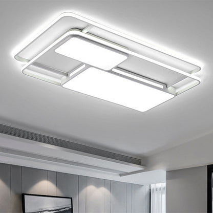 White/Black Rectangle Ceiling Flush Modernism LED Metallic Flush Lighting in White/Warm Light for Drawing Room Clearhalo 'Ceiling Lights' 'Close To Ceiling Lights' 'Close to ceiling' 'Flush mount' Lighting' 1194060
