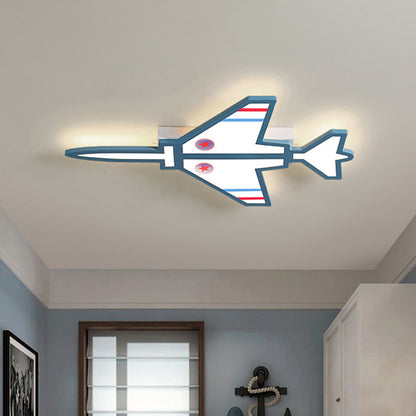 White/Blue Finish Airplane Shape Flush Lighting Cartoon LED Acrylic Flush Mounted Lamp Fixture for Kids Bedroom Clearhalo 'Ceiling Lights' 'Close To Ceiling Lights' 'Close to ceiling' 'Flush mount' Lighting' 1062423