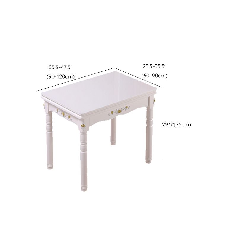 White Extendable Dining Table Solid Wood Dining Table for Dining Room