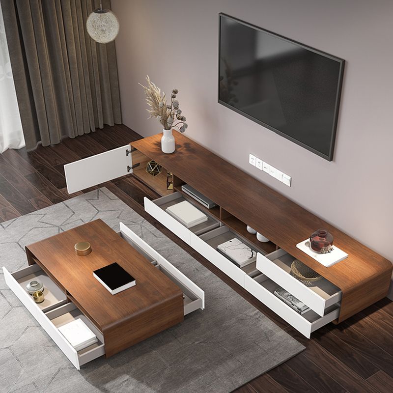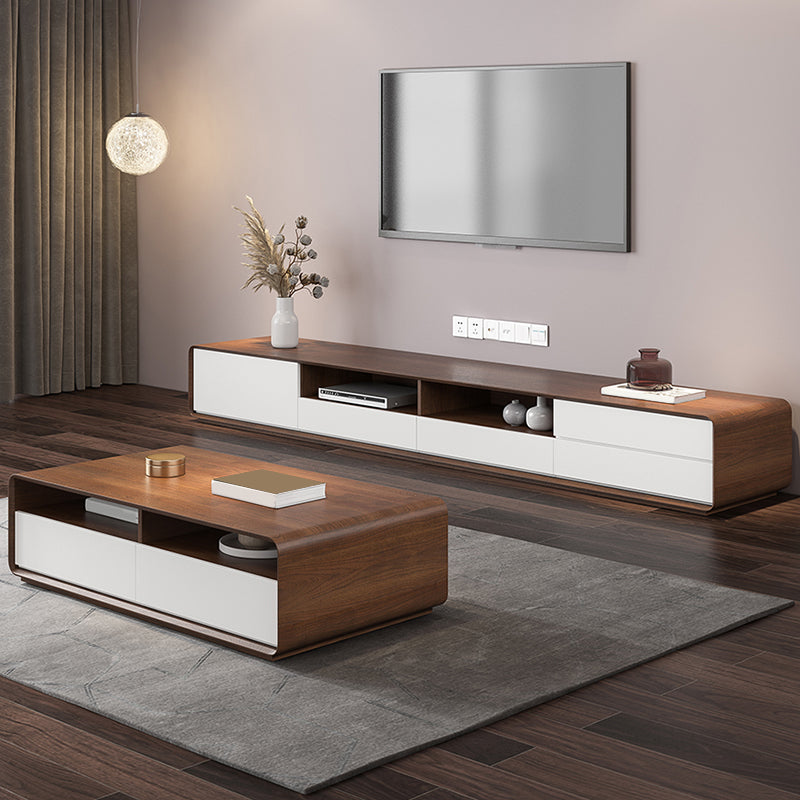 Wooden TV Media Console Contemporary Stand Console with 4 Drawers